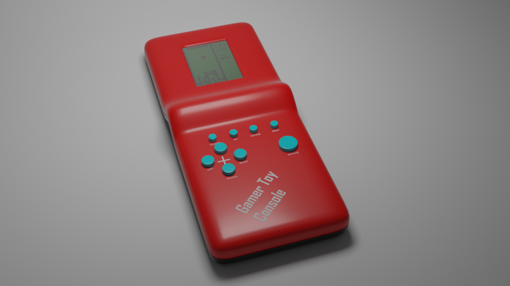 Nostlagic Tetris Console. Suitable for blender projects. It can also be used for game engines, but the vertices are a bit high for such simple models. Available in obj, fbx and Blend files. Feel free to use it The model has 21976 Polygons and 16427 Vertices The model is UV unwrapped but has materials. Text on the model is parented